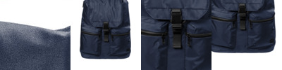 600-denier polyester with PVC coating; Zippered main compartment with 2 zipper pulls; Zippered front compartment; Inside zippered padded pocket with opening for earphones; Web handle at top of backpack; Padded back for support and comfort; 12" x 16½" x 7";