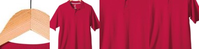 100% polyester pique, 4.1 oz./yd2/140 gsm; Moisture wicking, antimicrobial and UV protection performance; matching flat knit collar; heat seal label;