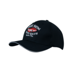 Headwear Professionals Structured Heavy Brushed Cotton Sandwich Trim Cap. Structured 6-panel, low profile cap with a pre-curved visor. Fabric covered short touch strap with slide buckle.