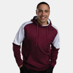 HOLLOWAY ADULT ALL AMERICAN HOODIE. 7.6 OUNCE 55% POLYESTER/41% COTTON/4% RAYON, SUPER SOFT FLEECE WITH WOVEN LABEL. EXTERIOR FAUX LEATHER LOGO LOOP LABEL. JERSEY LINED HOOD WITH METAL TIPPED DRAWCORD (ADULT ONLY). SET IN SLEEVES. FRONT POUCH POCKET. SPANDEX BLEND RIB-KNIT CUFFS. OPEN BOTTOM WITH A DROPPED TAIL AND SIDE VENTS.